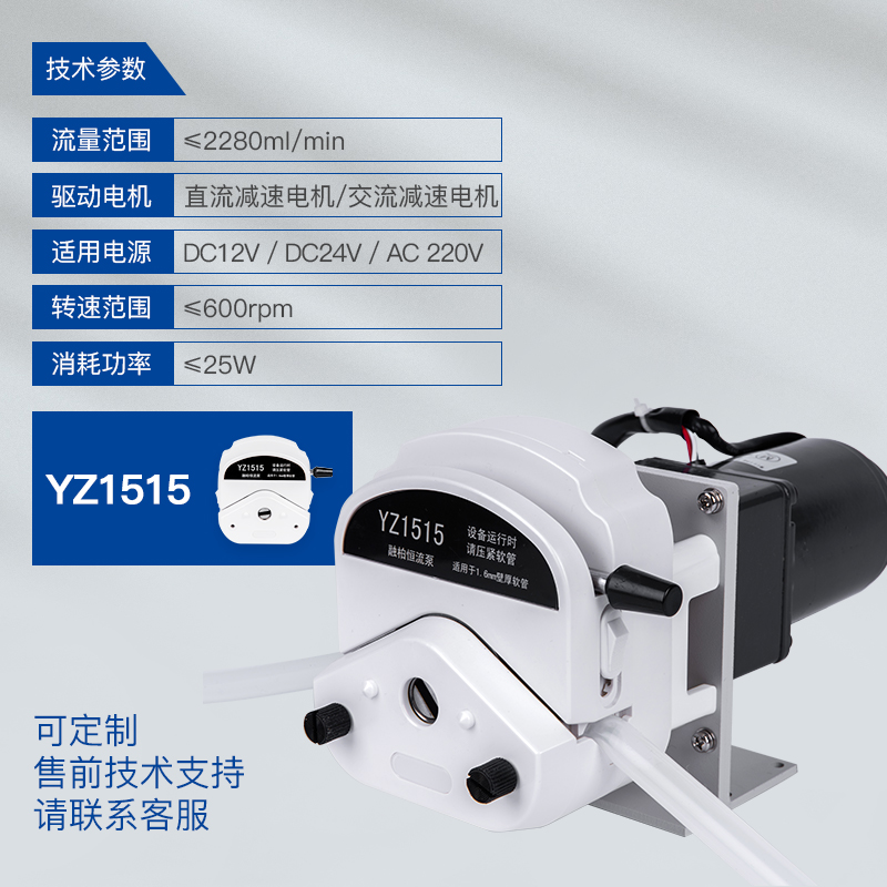 YZ1515泵頭:適用13#、14#、19#、16#、25#、17#、18#軟管 ,最大參考流量,≤2280mL/min,支持1通道