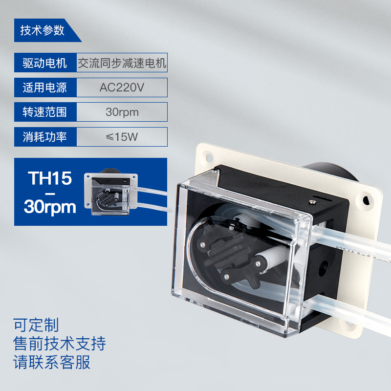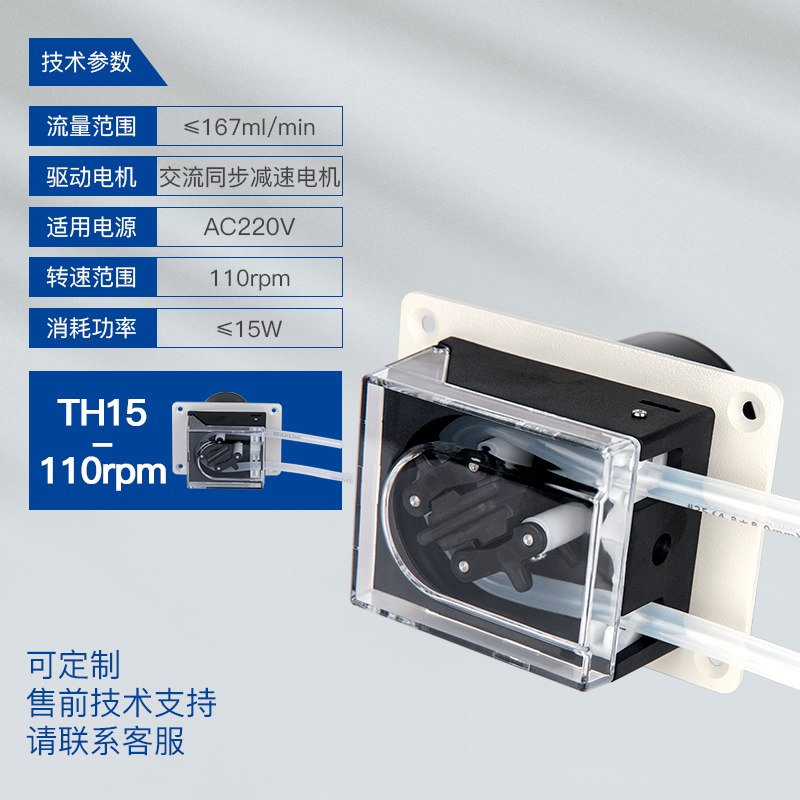 TH15泵頭適用16# 25#軟管,最大參考流量≤167mL/min,支持1通道