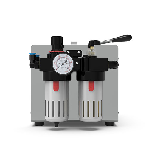 把外接氣源的連接管插入快速【氣源接口】, 調(diào)節(jié)【調(diào)壓閥】, 使壓力達(dá)到工作指標(biāo), 在【油杯】中加入壓縮空氣專(zhuān)用油